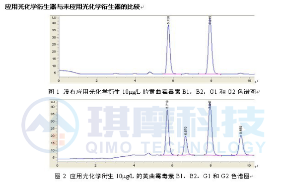8.使用光化學(xué)柱后衍生器可在線實現(xiàn)對黃曲霉毒素B1、G1進行衍生,不需要任何化學(xué)試劑。 光化學(xué)在線衍生系統(tǒng),不僅幫助您獲得重復(fù)性好的結(jié)果,還可以幫助您降低化學(xué)物質(zhì)的污染和危害。